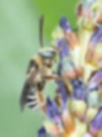 A male pickerelweed longhorn bee (Melissodes apicatus) drinking nectar from pickerelweed blossoms